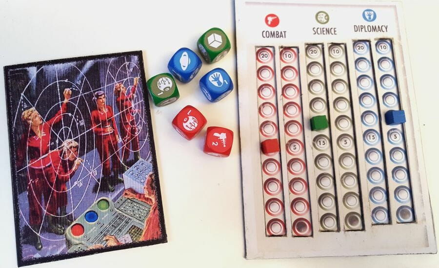 Le jeu utilise un mécanisme de construction de sac pour ajouter et retirer des dés d'un sac. Des cartes sont jouées pour explorer divers secteurs de l'espace et 6 dés personnalisés sont utilisés pour les situations de combat.