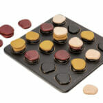 - 1 plateau, 24 galets en bois répartis en 3 couleurs, 1 sac en tissu, la règle du jeu