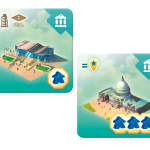 Chaque manche, une sélection de tuiles services publics est révélée et placée face visible à côté du plateau. Les joueurs peuvent alors construire ces bâtiments, chacun offrant un bonus ou une possibilité différente de marquer des points.