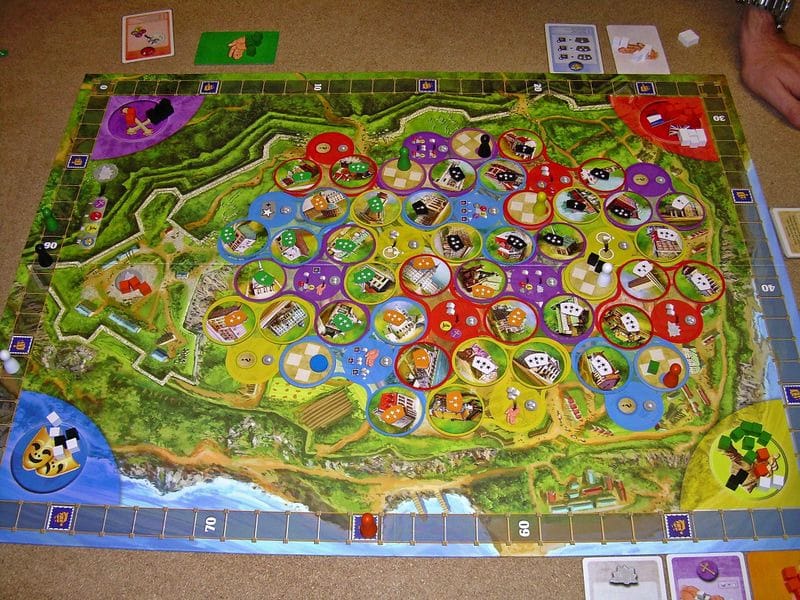 Les ouvriers ainsi déplacés permettent au joueur de marquer encore plus de points. Si un joueur a toujours la majorité dans la zone suivante, ses travailleurs sont à nouveau déplacés en cascade - un effet d'entraînement potentiellement dévastateur.