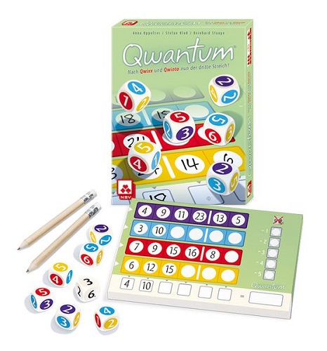 Dans Qwantum, les joueurs doivent marquer des nombres dans leur tableau personnel en respectant la règle suivante : les nombres doivent être toujours plus grands dans la couleur où les inscrivent. Les deux dernières valeurs de chaque ligne en revanche doivent être plus faibles.