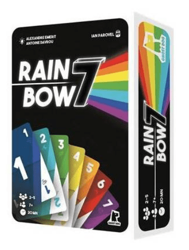 Rainbow 7 est un jeu de défausse facile à prendre en main et rapide à jouer. Débarrassez-vous de vos cartes en main grâce à des combinaisons de cartes et activez les effets. Annoncez un Rainbow lorsque votre main compte moins de 7 points ou réalisez un perfect en vous débarrassant de toutes vos cartes.