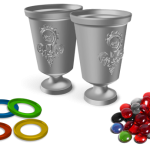 Dans Raise yours Gobelets, les joueurs prennent le rôle des nobles lors d'un banquet, chacun avec leur propre petit programme de vendetta personnelle. Chaque joueur a des jetons Vin, Poison et Antidote : ils peuvent les verser dans les gobelets, en essayant d'empoisonner leurs ennemis tout en restant en vie eux-mêmes !
