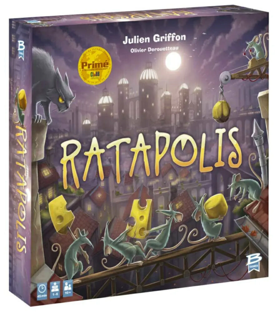 Dans Ratapolis, les joueurs essaient de sauver le plus grand nombre possible de leurs propres rats et de les laisser dans les tuiles de construction qui offrent le meilleur fromage à la fin de la partie.