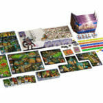 - 20 tuiles Bâtiment • 20 cartes Menace • 10 tuiles Pouvoir de bâtiment • 5 x 20 meeples (5 couleurs distinctes) • 1 bloc de feuille Programmation • 5 paravents • 8 jetons Gruyère