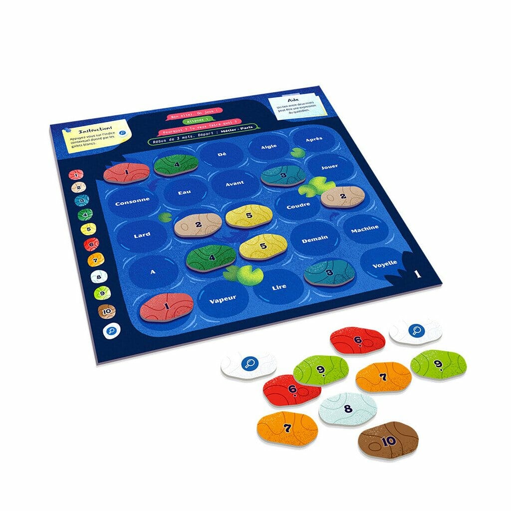 Chaque énigme est constituée d'un dialogue dont il faut découvrir la dernière phrase pour comprendre l'histoire. Pour la trouver, le ou les joueurs (en collaborant) doivent résoudre une grille de 25 mots dont la plupart doivent être cachés par des "galets". Pour les placer, les joueurs doivent trouver des couples de mots obligatoirement alignés. Chaque couple de mots amène par ricochet (association d'idées) au couple de mots suivant, jusqu'à ce que tous les galets soient posés.