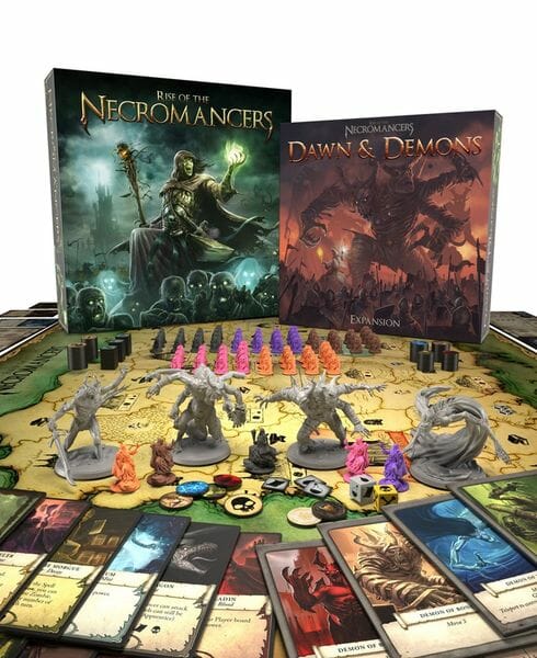 Aube et Démons, la première extension de Rise of the Necromancers, vous donne le pouvoir d'invoquer et de commander quatre figurines de démons hautement détaillées. Vous disposerez désormais de deux pièces sur le plateau de jeu, permettant à votre Nécromancien de faire des recherches sur les arts sombres tandis que votre démon, le général de votre armée de morts-vivants, conquiert les terres au nom de son maître.