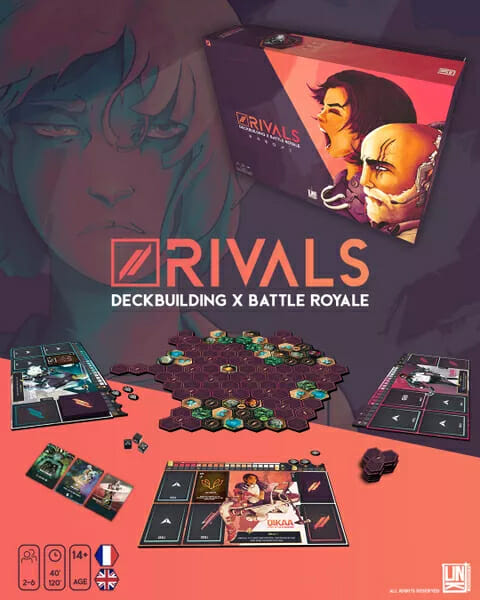 Rivals est un jeu de plateau de deckbuilding basé sur un gameplay de Battle Royale. Vous incarnez l'élu de votre clan et vous vous battez pour sauver votre peuple de l'extinction.