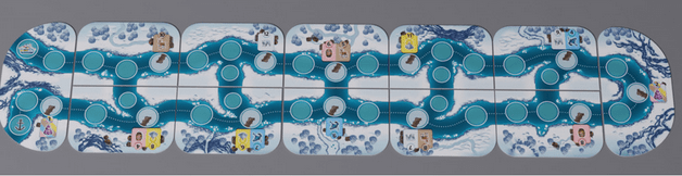 Le jeu est livré avec un plateau de jeu modulaire, qui compose l'itinéraire du jeu. Sur un bateau de croisière fluviale, tout le monde suit le même itinéraire, mais vous pouvez emmener vos touristes sur des circuits différents.