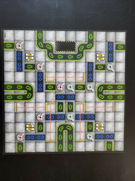 Le jeu comprend six figurines de robot prépeintes et quatre plateaux de jeu d'usine recto-verso, avec treize parcours de course préétablis et plus de quatre-vingts parcours de course différents. Les règles proposent des options pour des courses courtes ou longues, des parcours de débutant à avancé, et des variantes de jeu.