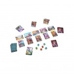 - 6 dés, 65 cartes de jeu (15 cartes de lieu, 10 cartes de pénalité et 40 cartes d’habitant), 1 règle du jeu.
