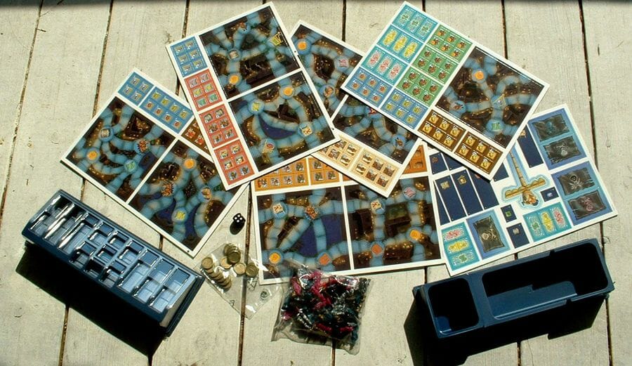 Le jeu contient 76 figures de pirates en plastique, 9 pièces de plateau de jeu qui assurent que le plateau est toujours différent, environ 200 tuiles et 1 dé.