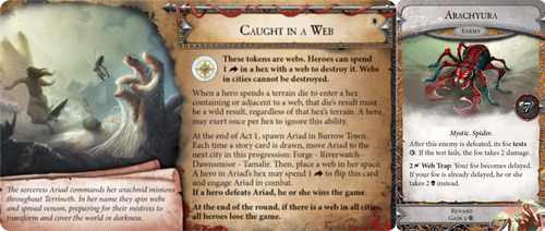La sorcière Ariad a encore une fois établi un plan pour conquérir Terrinoth avec ce scénario. Maintenant, elle ordonne à ses séides arachnide de se propager insidieusement dans tout le royaume, filant leur toile, injectant du venin, et préparant l'arrivée de leur maîtresse pour couvrir le monde de ténèbres.