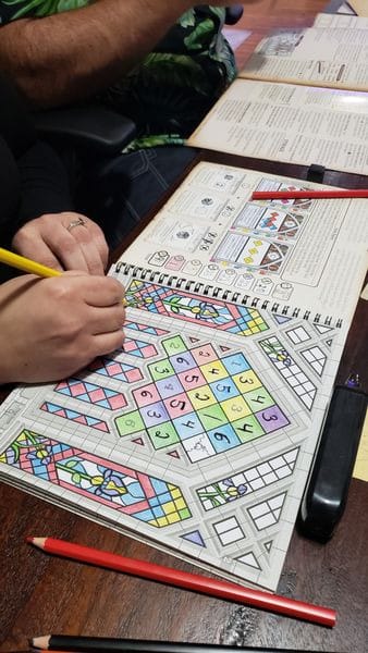 En tirant soigneusement les dés et en coloriant les espaces pour respecter au mieux les restrictions et les objectifs de chaque fenêtre, vous serez victorieux !
