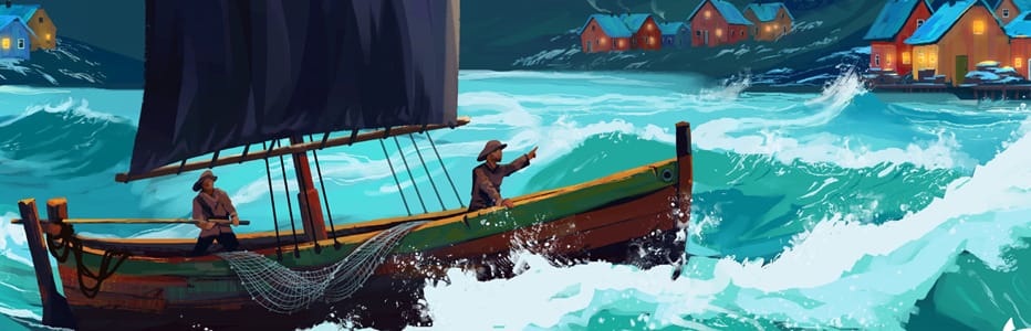 Vous le savez si vous nous lisez, Saltfjord de Eilif Svensson & Kristian Amundsen Østby est la réédition d’un jeu de 2017 : Santa Maria (et oui, on en parlait