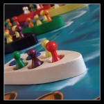 - Une fois que tous les joueurs ont sorti un pion, alors, en commençant par le joueur qui a enlevé son pion en dernier, et en continuant dans le sens inverse des aiguilles d'une montre jusqu'à l'Amiral, chaque joueur doit mettre le pion qu'il a enlevé dans un canot différent.