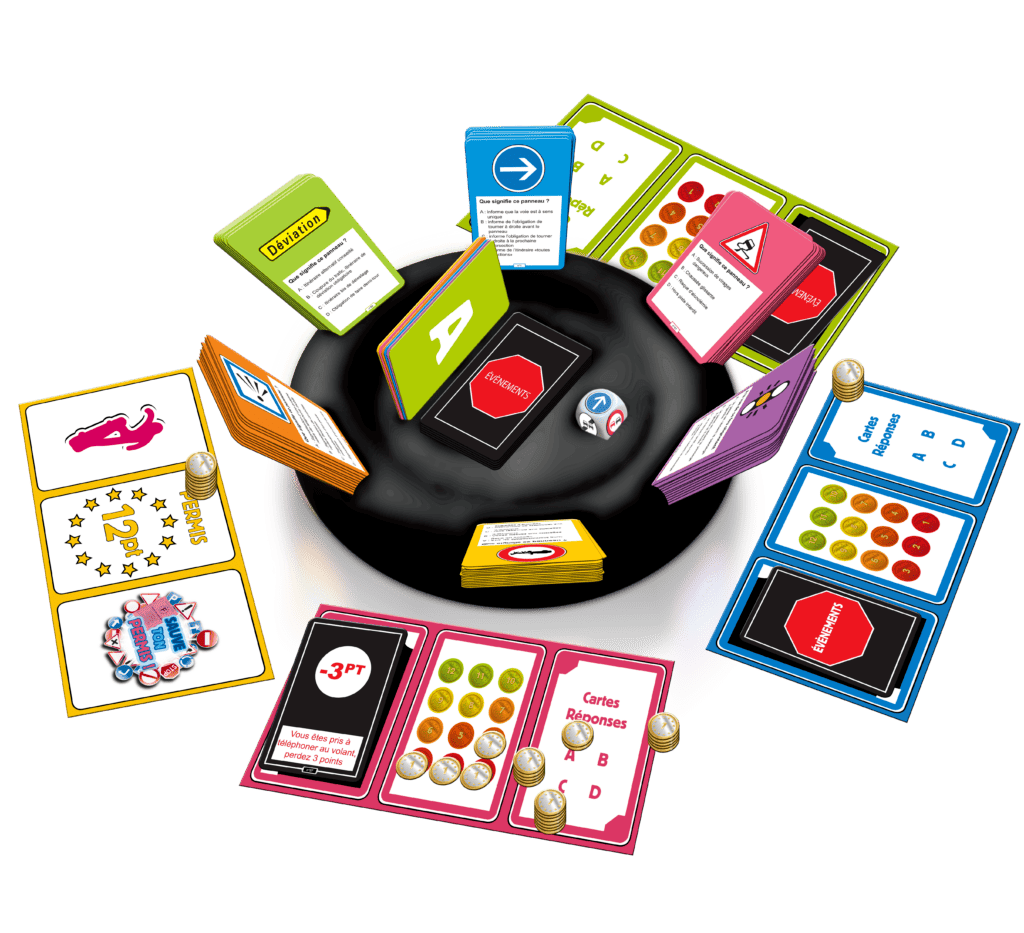 Chaque bonne réponse aux questions vous permet de garder vos points et les cartes événements font perdre des points à vos adversaires.