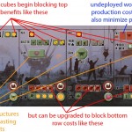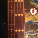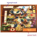 Une fois en jeu le rythme est parfait. Une case d'action, on déclenche celle du haut et / ou celle du bas et on passe la main. Ce qu'il faut d'interactions, sans que ça se limite au militaire... Qui peut être très peu présent tout au long du jeu, hormis en fin de partie où les esprits s'échauffent.