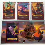 On ajoutera ainsi des cartes au butin, avec un maximum de 3. Ensuite si personne n'en veut (toujours pas ! ce qui arrive car il y a des cartes négatives !), on y ajoute directement des pièces d'or (une pièce vaudra 1 pv).