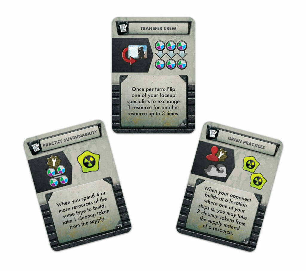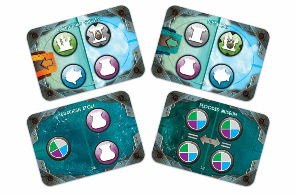 Seastead contient des tuiles de flottille à double face, une variété de cartes spécialisées et de multiples chemins de construction pour créer des stratégies d'exploration sans fin !