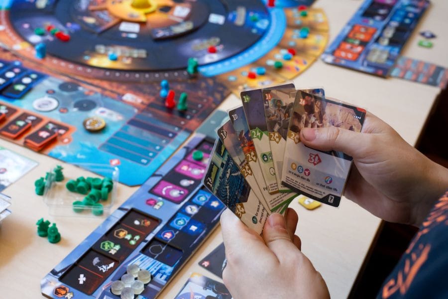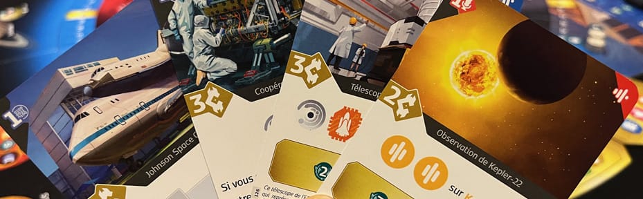 Vous utiliserez également plus de 200 cartes pour faciliter vos efforts ou orienter vos recherches dans une direction particulière afin d'obtenir des bonus et des récompenses supplémentaires. Chaque carte a des effets et des illustrations uniques et représente des technologies, des projets et des découvertes de la vie réelle (comme l'ISS, le Grand collisionneur de hadrons, le rover Persévérance, la sonde Voyager et bien d'autres).