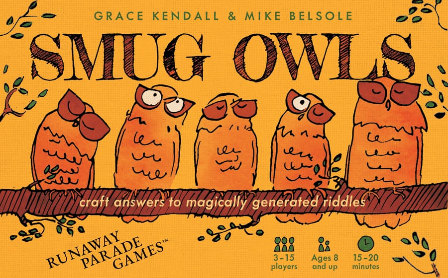 Dans Smug Owls, faites la course pour trouver des réponses à des énigmes inédites créées par un jeu de cartes magique. Votre réponse peut être n'importe quoi : drôle, amusante, intelligente, profonde, absurde, et j'en passe. Posez votre main sur la table lorsque vous êtes prêt. Lorsqu'il ne reste plus qu'un joueur, il devient le hibou suffisant, qui écoute toutes les réponses et récompense sa préférée.