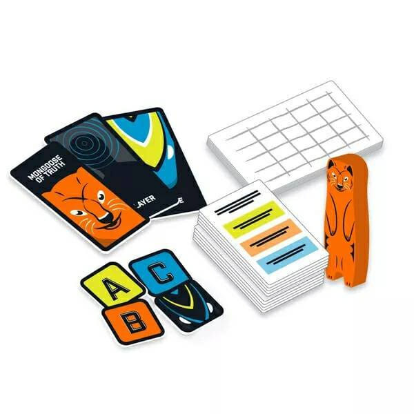 Dans ce jeu d'ambiance et de bluff, chaque joueur se voit attribuer un rôle caché en début de tour : Serpent, Mangouste de la vérité ou Humain ordinaire. Puis vient le moment de piocher une Question. La mangouste révèle son identité, vous pouvez lui faire confiance. 2 clans se forment alors : les Serpents qui se reconnaissent en début de tour et ont pour objectif d'influencer les autres joueurs vers une mauvaise réponse à la question. Et les humains Ordinaires et la mangouste, qui eux cherchent à trouver la bonne réponse.