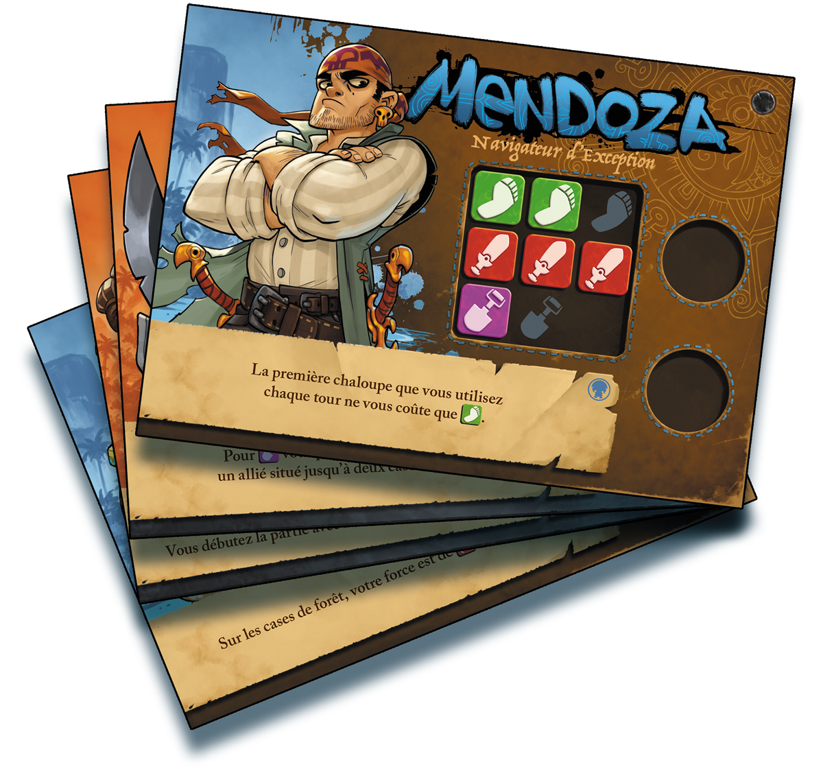 * Les personnages utilisent les points d'action conférés par leurs caractéristiques pour se déplacer sur l'île (et le relief a un impact à ce niveau) et fouiller, à la recherche d'indices permettant de localiser le trésor, et autres bonus qu'ils peuvent trouver