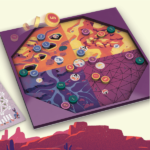 Dans Sonora, les joueurs posent des disques en bois sur un plateau de jeu représentatif de différents paysages vibrants à travers les sables sonoriens.
