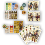 - Contenu: 4 plateaux de joueur, 4 jetons de gloire, 36 cartes, 16 tickets de paris, 20 jetons de paris, 4 jetons de capacité, 44 pièces, 1 livret de règle.