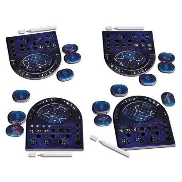 À l'aide de plateaux rotatifs, chaque joueur repère des constellations uniques au fil de sa traversée de la sphère céleste.