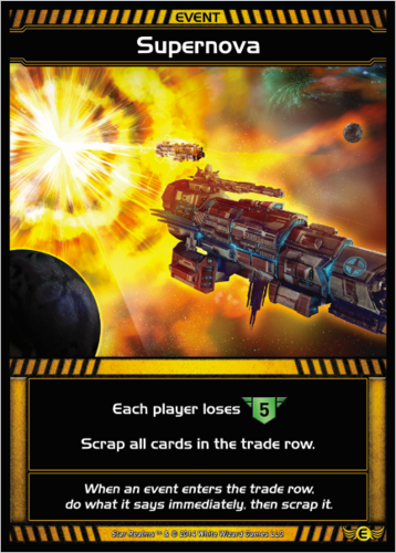 Nouvelles cartes en jeu : les événements. Quand un Event arrive dans la rivière centrale, ça peut détruire des bases, mélanger le jeu, permettre aux joueurs de piocher etc!
