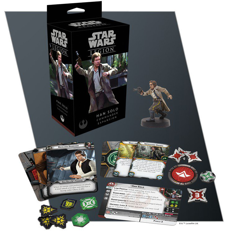 Han Solo intègre le jeu Star Wars : Légion en tant que troisième commandant de la Rébellion, prenant sa place aux côtés de Luke Skywalker et Leia Organa pour compléter le trio de héros de la trilogie classique Star Wars.