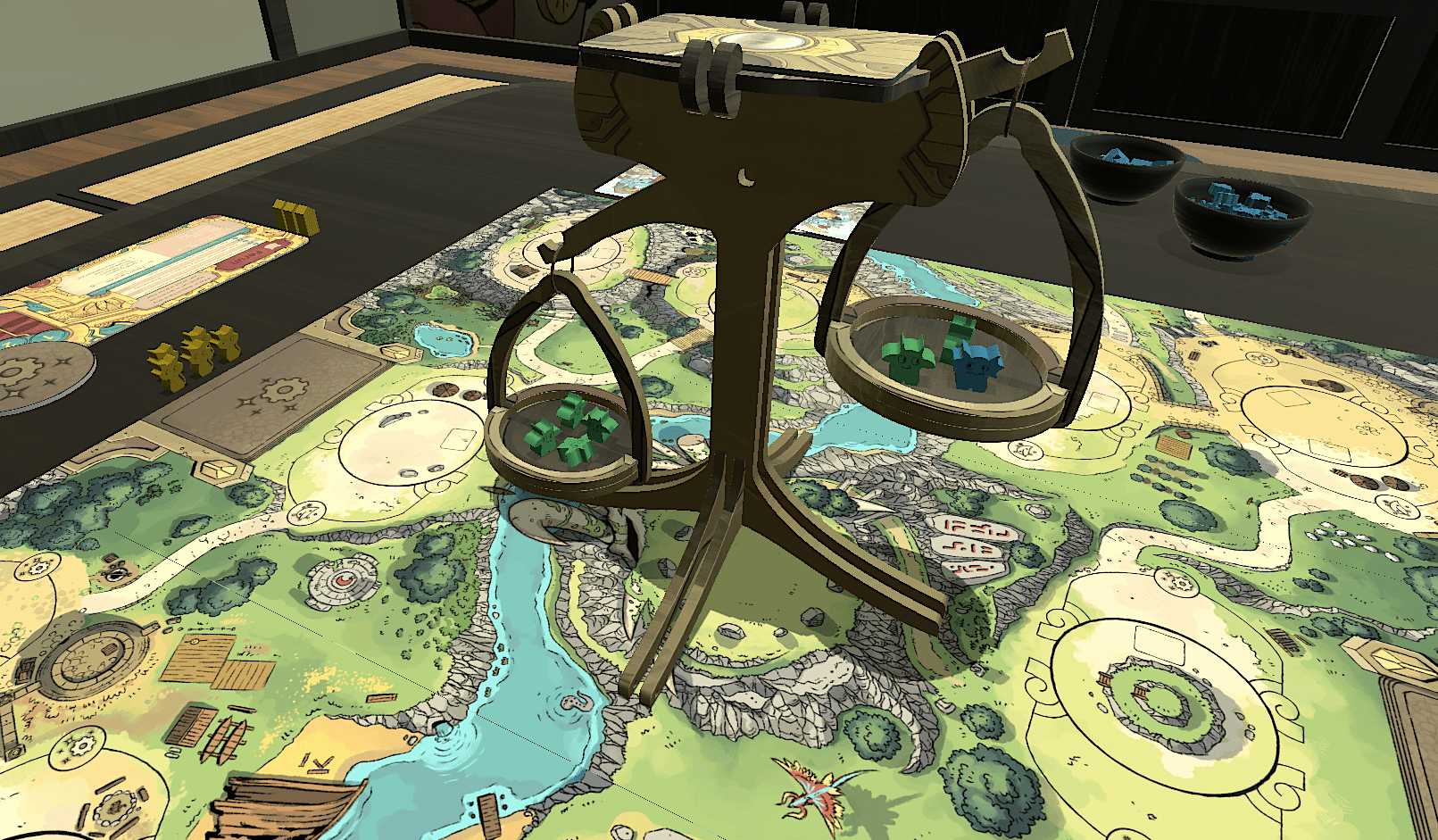 L'échelle qui s'élève au-dessus du plateau de jeu est une grande partie de Statera - le jeu et le monde. Les histoires déjà créées pour le jeu utilisent la balance pour compter les âmes, les équilibrer, pencher vers un campement spécifique ou en éloigner les âmes. Ce composant est tout simplement crucial pour jouer au jeu !