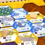 Les tuiles hexagonales arrivent une à une sur le marché. Plus vous prenez le risque d’attendre avant de les acheter, moins elles couteront cher (de 10$ à 0). Une tuile achetée doit être posée à côté de celles que vous avez déjà placées devant vous. Il faut procéder précautionneusement car les tuiles interagissent entre elles. Un parc fait par exemple grimper d’1 votre réputation par tuile qu’il touche ; un parking et un immeuble qui se touchent font grimper vos revenus…