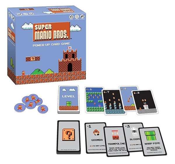 The Super Mario Bros. Power Up Card Game propose un tout nouveau jeu avec quelques uns des personnages les plus populaires de tous les temps. Utilisez votre intelligence et vos talents de déduction pour survivre aux périls du royaume des champignons et atteindre le château en toute sécurité. Conserver ou échanger des cartes de niveau pour obtenir le meilleur score dans ce jeu de cartes Power Up.