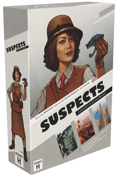 Suspects est une série de jeu d’enquêtes avec des règles minimales, et centrée sur les personnages à la manière des romans d’Agatha Christie. Chaque boîte est axée sur un enquêteur et une époque, et propose 3 scénarios avec des personnages bien travaillés et des intrigues solides.