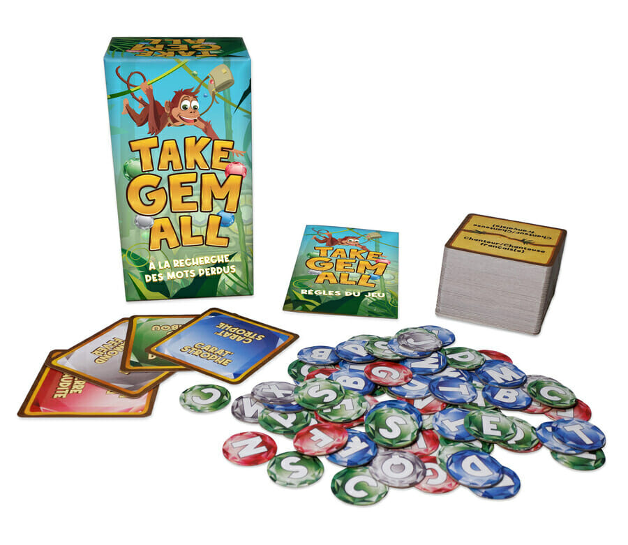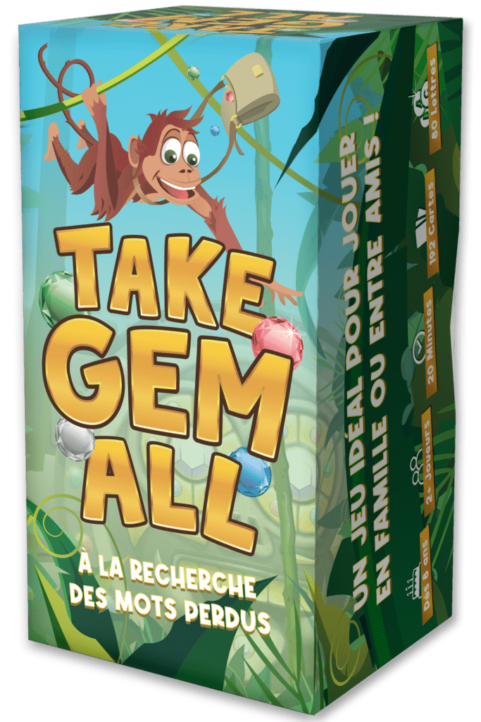 Embarquez dans une aventure ludique et surprenante qui couronnera le joueur le plus rapide et malin d'entre vous ! TAKE GEM ALL réinvente les jeux de mots en alliant la mécanique du célébrissime Petit Bac de notre enfance à la folie d'un Jungle Speed.