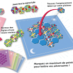 - 6 plateaux individuels, 6 sets de 27 tuiles hexagonales et ce livret de règles.