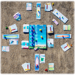 Dans le jeu, on va déterminer les vagues (déplacer les tuiles vagues vers la plage, lancer les dés pour déterminer les nouvelles valeurs des vagues) puis chacun se fera une main à 5 cartes et choisira l’action qu’il décide de faire en plaçant une carte de sa main face cachée devant lui. Son placement par rapport à votre planche déterminera la façon dont vous vous en servirez. Puis, on révèle nos cartes et on réalise les actions avant de défausser nos cartes. En dernière phase on scorera nos points, on retourne la carte du deck vague, tous les joueurs qui sont en train de chevaucher une vague doivent décaler leur équilibre sur leur planche au cas où. S’il perde l’équilibre, le surfeur tombe. Sinon, vous pouvez marquer des points, puis on recommence un tour.