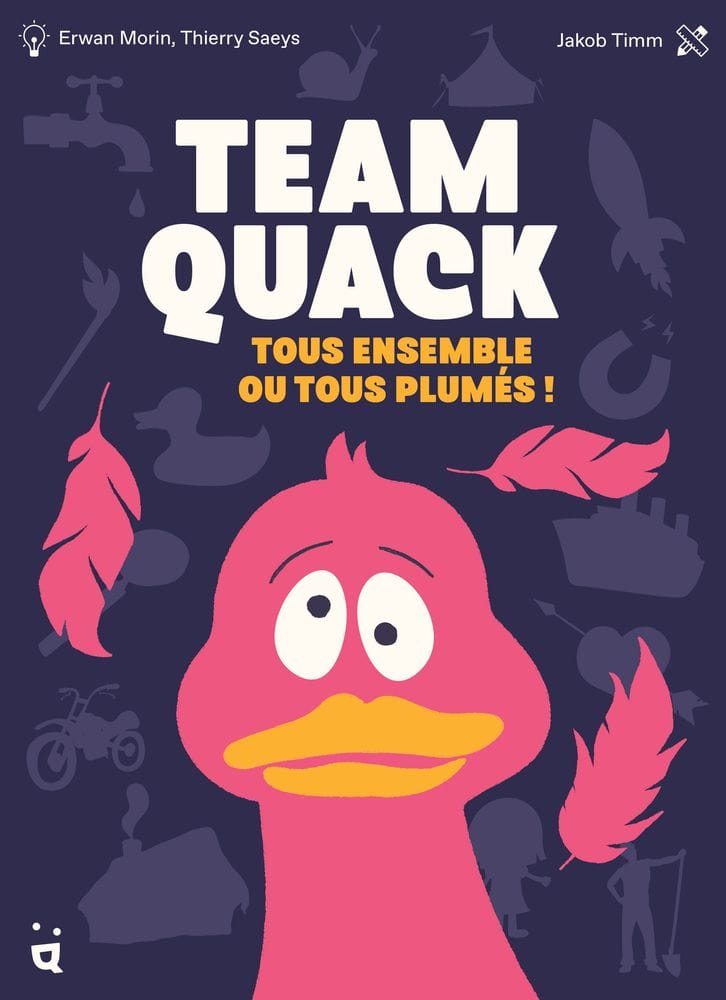 Team Quack est un jeu coopératif dans lequel vous devrez deviner et faire deviner des images secrètes en utilisant des cartes indices. À chaque manche, vous devrez évaluer la clarté de vos indices et la facilité avec laquelle vos coéquipiers devineront votre Carte Secrète. Mais attention, trop d'erreurs vous feront perdre de précieuses vies ! Votre équipe sera t-elle sur la même longueur d'onde.