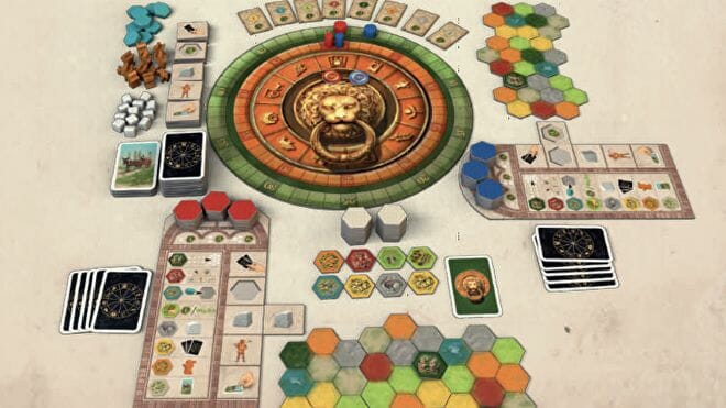 Deux à quatre joueurs se relaient pour tirer deux cartes de région, prendre une tuile ou jouer une tuile sur leur tableau de région.
