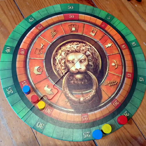 D'autres moyens de gagner des points consistent à remplir chaque zone colorée du tableau des régions d'un joueur avec des tuiles et à acquérir des bonus tels que des jetons de marbre et d'ouvrier.