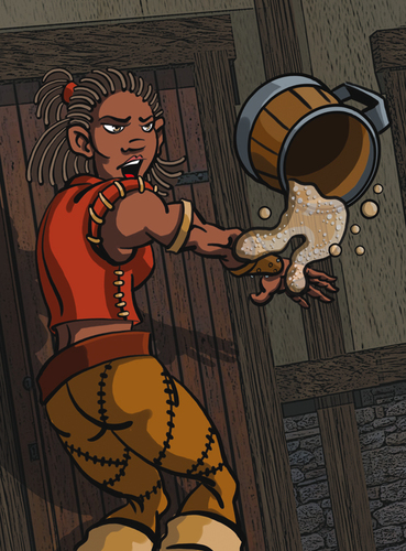 Jetez les tasses, smashez les chaises, balancez le lustre, sirotez du légendaire Dragon, lancez des sorts, et tirez le tapis sous vos compagnons d'aventure.