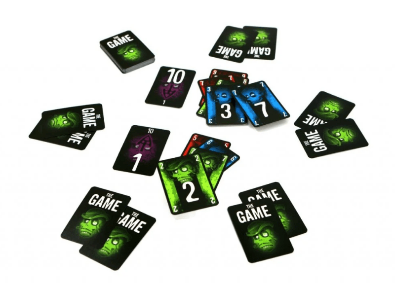 The Game : en Vert et Contre Tous , reprend les règles du jeu The Game avec quelques changements: Il n'y a que 2 piles sur la table, une qui monte, une qui descend.Les cartes sont de 5 couleurs différentes et une carte, quelle que soit sa valeur, peut toujours être posée sur une carte de la même couleur.Chaque joueur n'a que 2 cartes en main et doit en jouer une et une seule durant son tour.