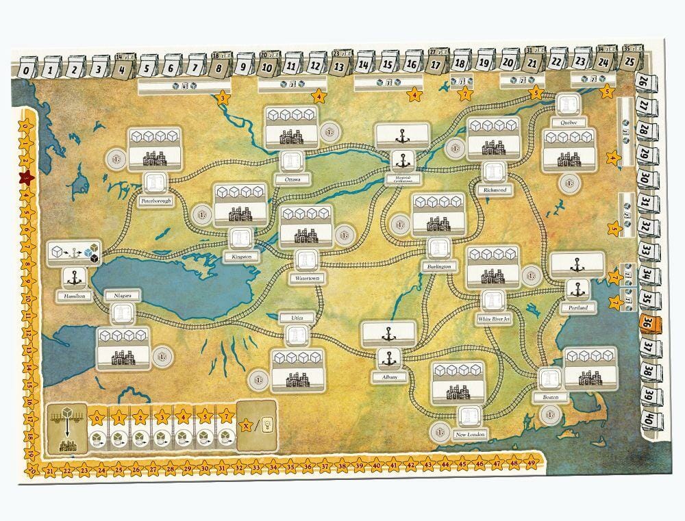 Pour ce faire, ils utilisent des cartes constituées de matériel ferroviaire et de lieux pour déplacer leur train entre ces lieux afin de prendre et de livrer les marchandises en fonction de l'offre et de la demande. Ce mouvement de leurs trains est enregistré sur la "piste du temps", qui indique le nombre de jours que les joueurs consacrent aux actions. L'efficacité est importante, tout comme la capacité de livrer des marchandises spécifiques juste à temps vers certaines destinations.