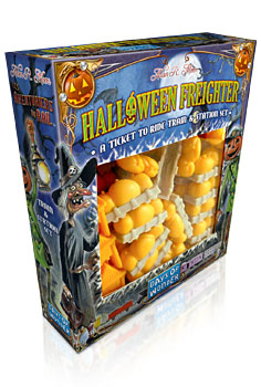 Ce set de wagons et gares finement sculptés comprend 45 wagons-citrouille orange et 3 gares maudites d'Halloween. Les fans des Aventuriers du Rail qui souhaitent personnaliser leur jeu pourront utiliser ce set en remplacement d'une couleur de leur choix lors de leurs parties, et ce sur n'importe quel plateau de jeu.