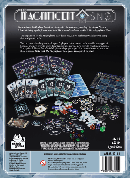 Cette extension de The Magnificent présente SNØ, une nouvelle artiste avec ses propres tuiles de camp et cartes d'affiches.