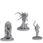 - 8 Figurines Finement Détaillées, 1 Fiche du Péché, 12 Cartes Péché, 3 Dés du Péché.