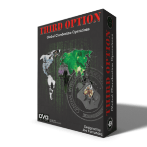 Third Option est un jeu de cartes solitaire qui se joue sur un tapis de mission où le joueur sélectionne, déploie et manœuvre des équipes et des ressources représentant les services clandestins américains, en mettant l'accent sur les opérations paramilitaires contre des adversaires dans le monde entier. Un système de "phases" est utilisé avec des dés, des cartes et des pions pour mener à bien diverses missions. La carte du monde est divisée en six zones d'opérations pour le Commandement central militaire des États-Unis. Dans ces zones géographiques, le commandement des opérations spéciales (SOCOM) et les services de renseignement américains mènent des actions secrètes contre les forces hostiles qui menacent les intérêts de sécurité nationale des États-Unis et de leurs alliés. Les missions qui nécessitent l'utilisation de méthodes hautement secrètes et un déni plausible de la part du gouvernement sont menées par le Centre d'activités spéciales (SAC) de la Central Intelligence Agency, également connu sous le nom de "troisième option".